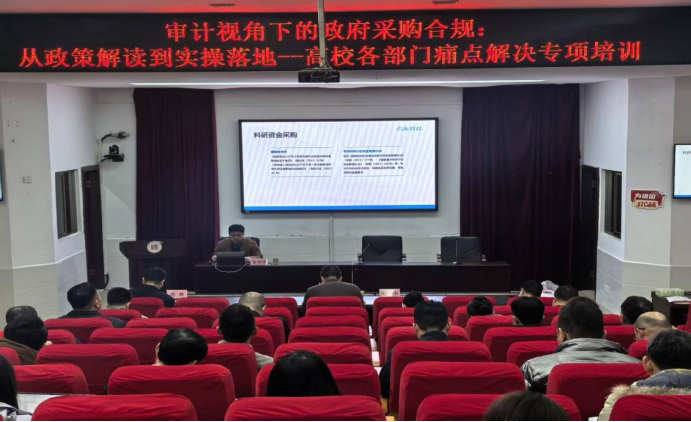 2025年12月23日,应湖南现代物流职业技术学院(以下简称“学院”)邀请,湖南招标成功为学院提供“审计视角下的政府采购合规:从政策解读到实操落地”专项培训支持。本次培训旨在精准对接学院内部管理需求,提升学院各部门的政府采购合规意识与风险防控能力。学院领导及各二级学院、基建处、后勤与资产管理处等关键部门负责人及业务骨干参加了此次培训。